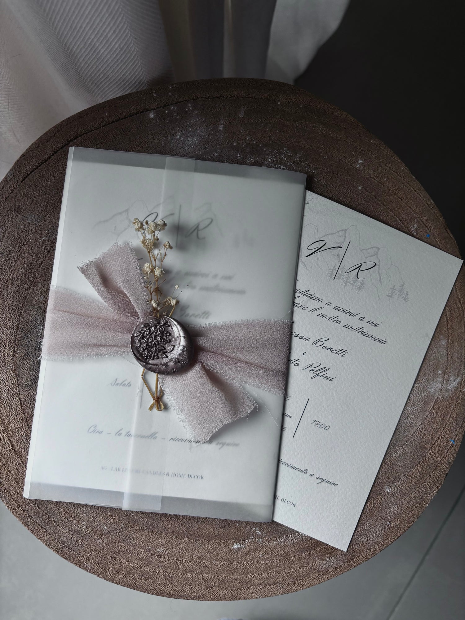 Carte naturali, texture tattili, nastri in chiffon e palette delicate si fondono per creare un’estetica coerente, elegante e autentica.