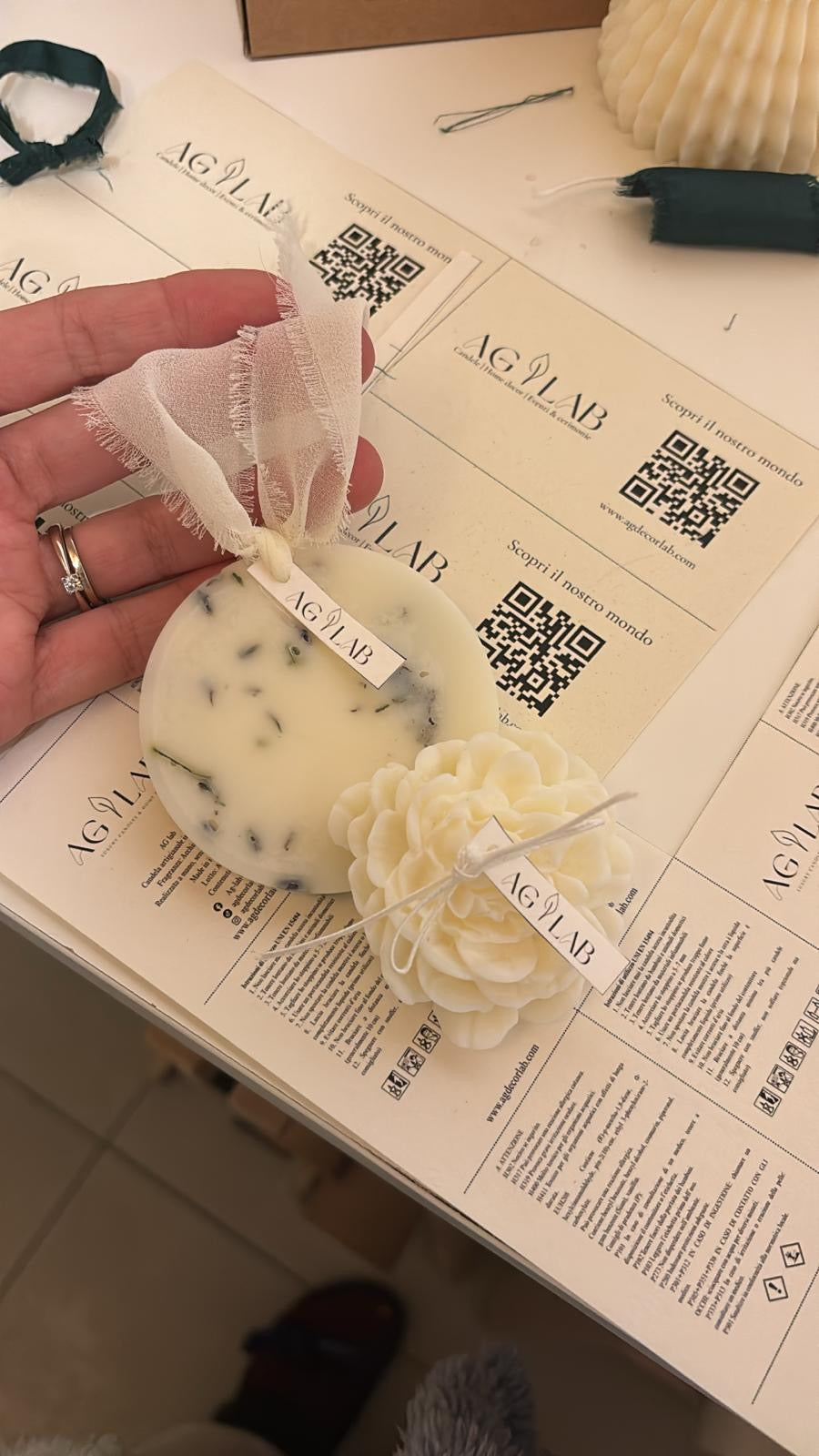 Usiamo solo cere naturali, resine ecologiche e fragranze prive di ftalati e CMR.